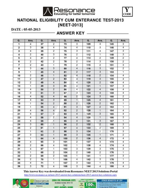 Read Neet 2013 Answer Key Code Y Reader